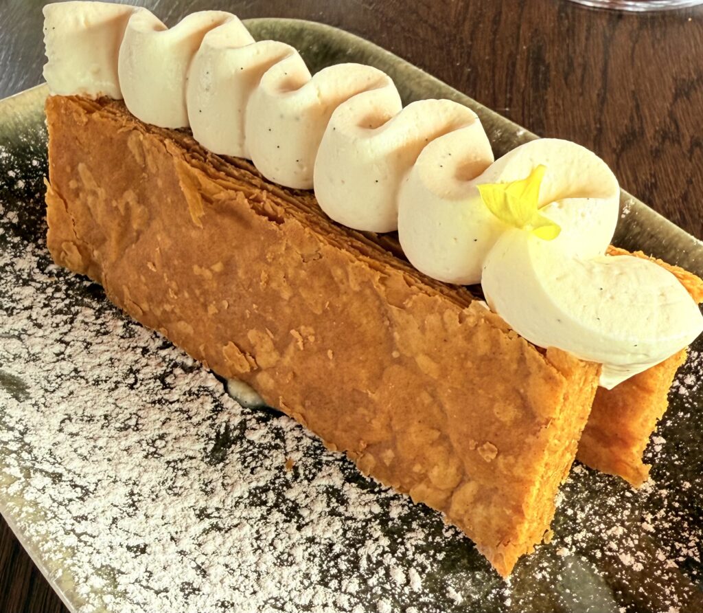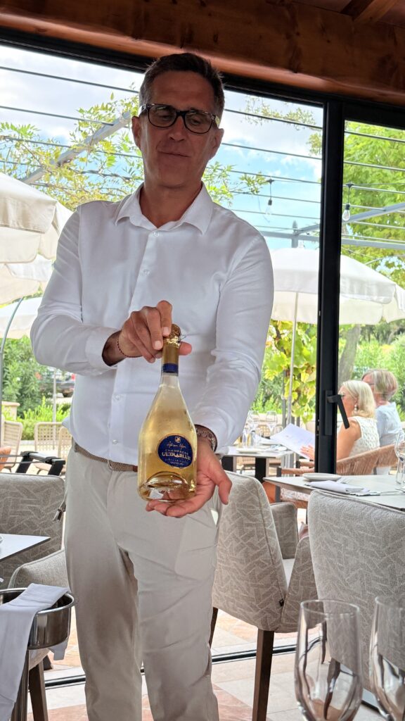 Etter vinprøving var det tid for lunch, og vi valgte en seks retter degustationsmeny med vinpakke. Det var en del folk der da vi kom inn i restauranten, men underveis i måltidet ble det neste fullt. Men vi er klar over franske familier gjerne spiser lunch ute på søndager.