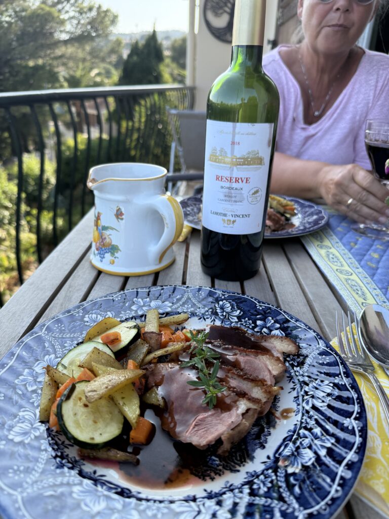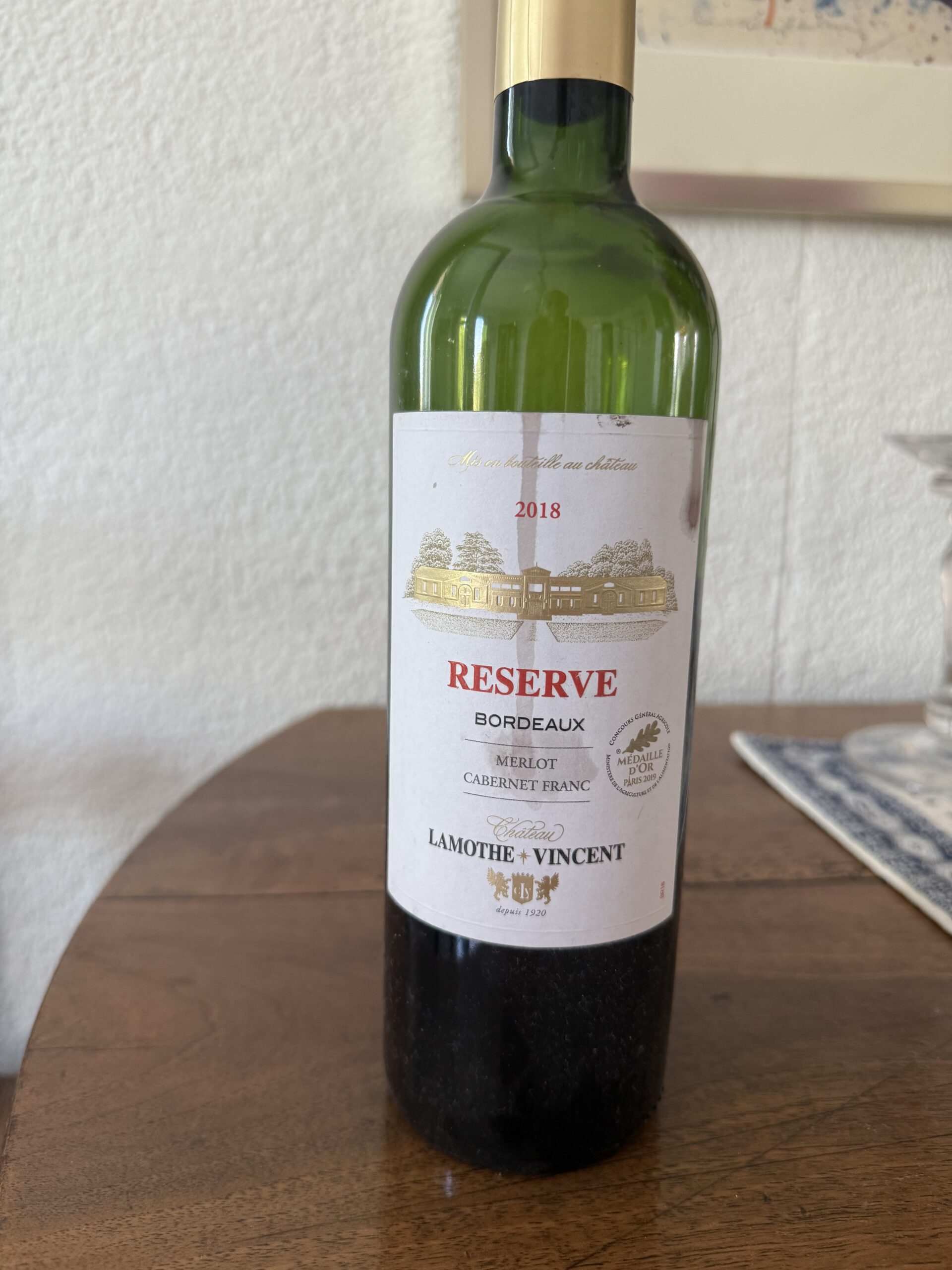 Til andebrystet denne dagen fant jeg en 2018 årgang Bordeauxvin i skapet. Den var «kun» AOP Bordeaux, men var perfekt moden og deilig. Drueblandingen var 80% Merlot, 12% Cabernet Franc og kun 8% Cabernet Sauvignon. Denne blandingen er ikke så vanlig i Médoc men heller Pomerol og på østre siden av Gironde. Fargen var dyp lilla-brun, smaken var preget av kirsebær og milde tanniner, sødme og fylde.