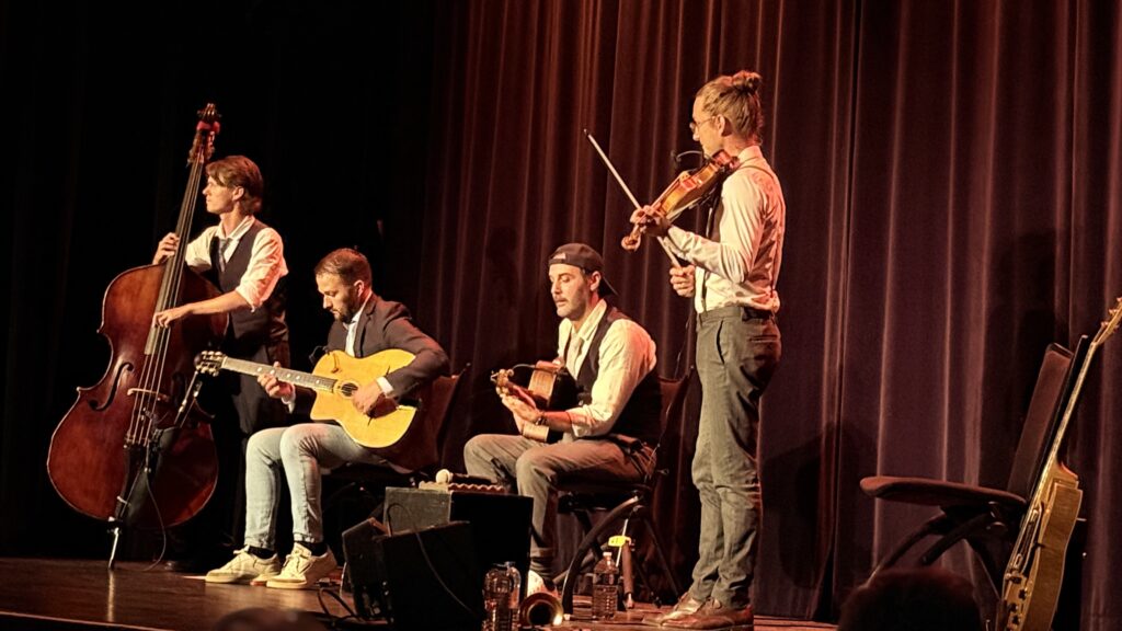 «La formation se veut majoritairement dans l’esprit du Quintet du Hot Club de France de Django Reinhardt et Stephane Grapelli.»